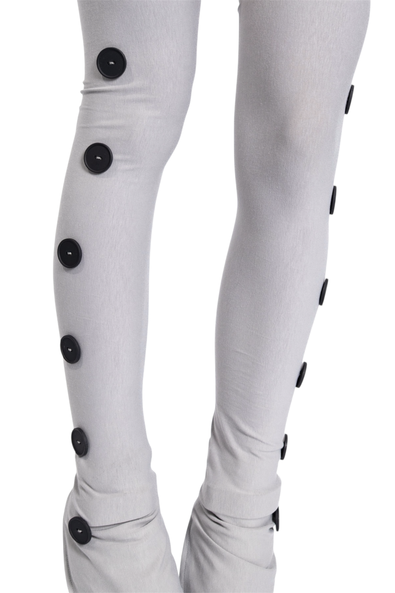 Handmade in Kyiv, Ukraine, the Porcelain Doll Stockings are part of the Porcelain Chaos collection, designed to fit close to the leg while holding their shape. Soft structured cotton with gentle stretch creates a long, clean line, finished with matte button details along the side and a subtle slit at the back for movement.
