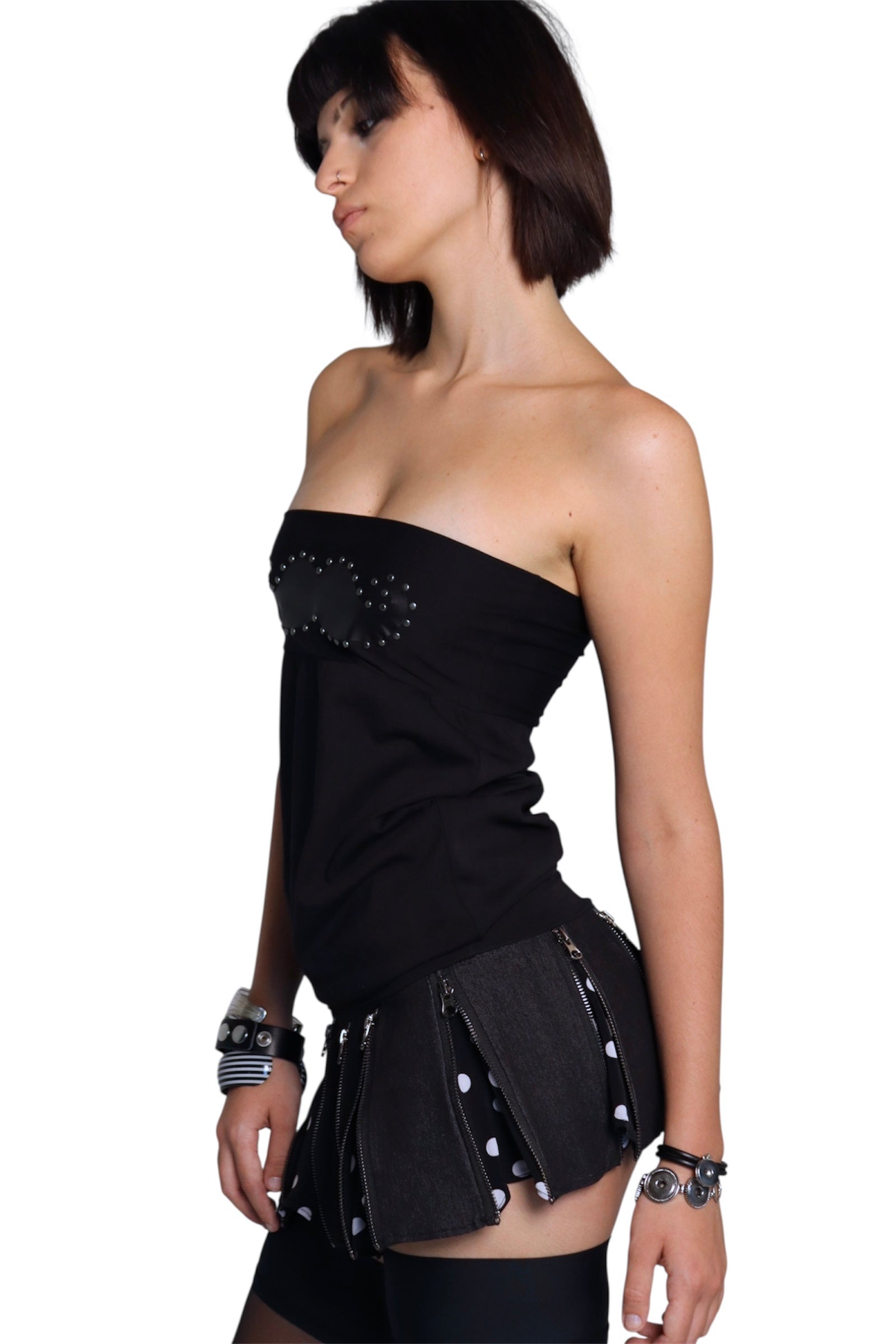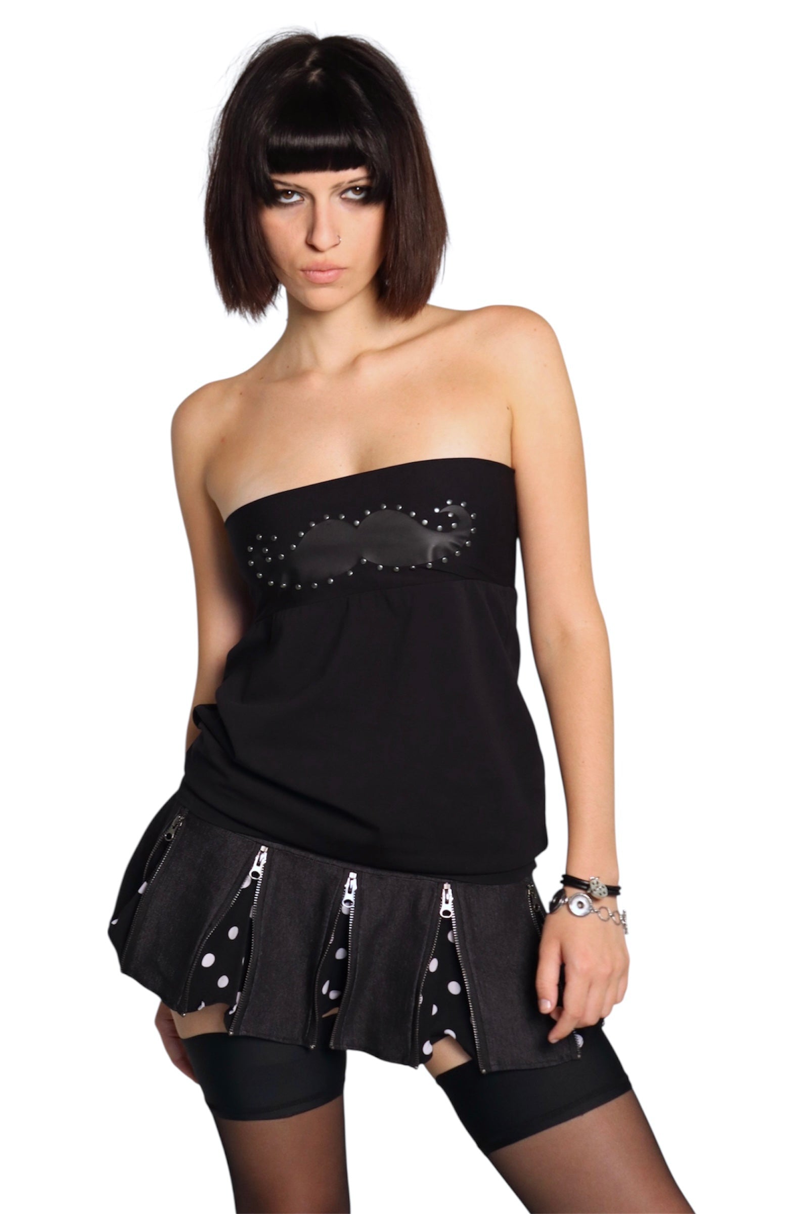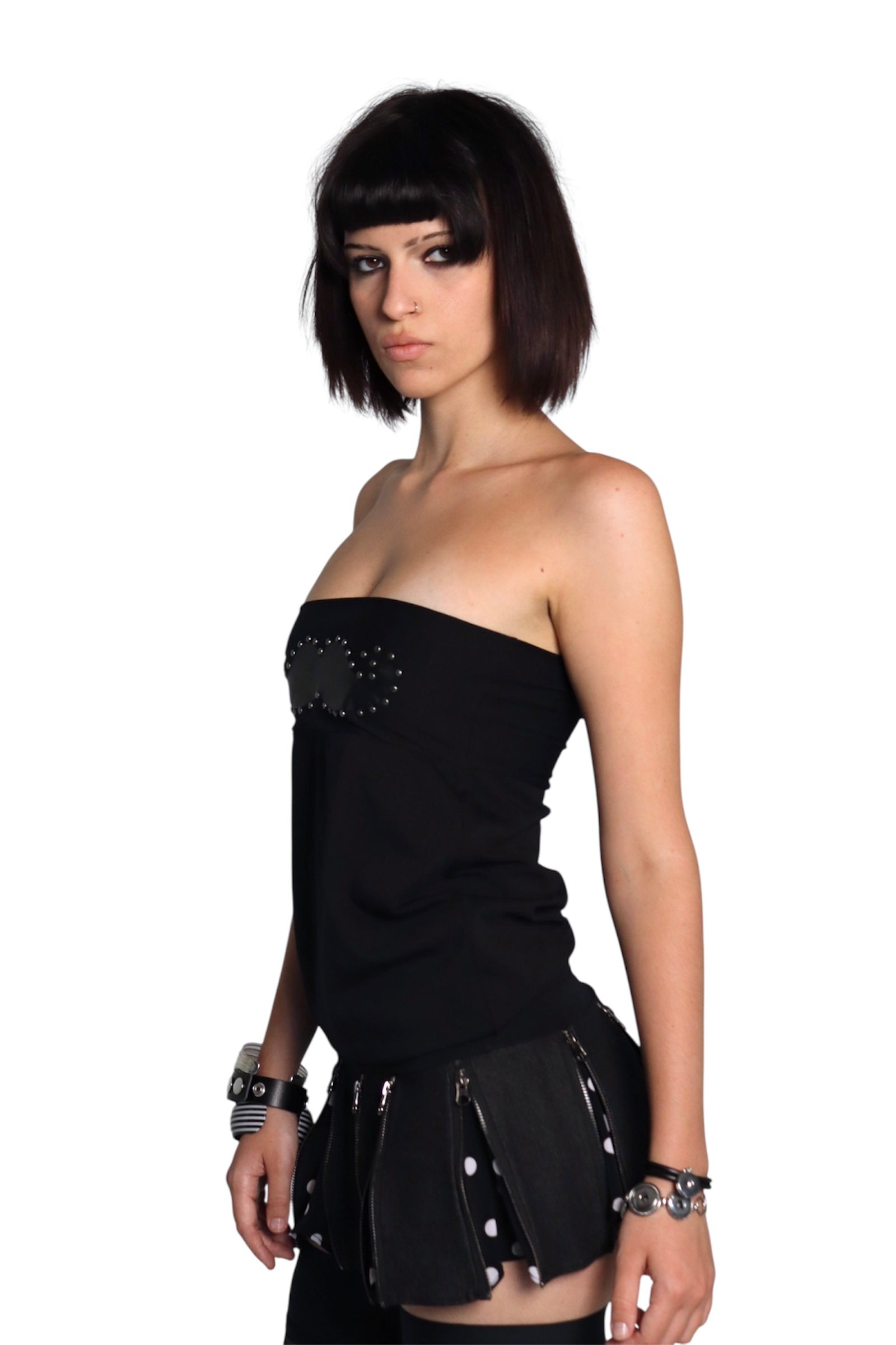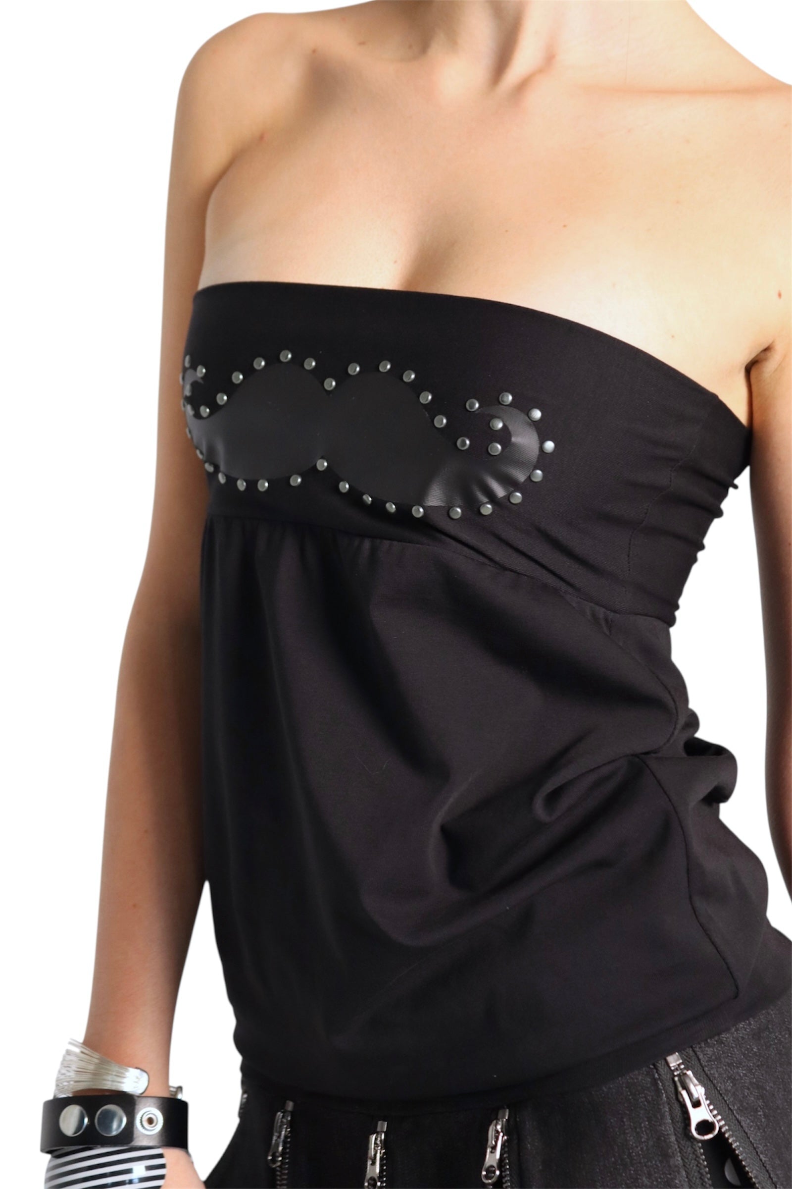 Black cotton top with a straight fit. On the chest — printed black whiskers, fully outlined with rhinestones for a sharp, glossy accent. Clean shape, bold detail.